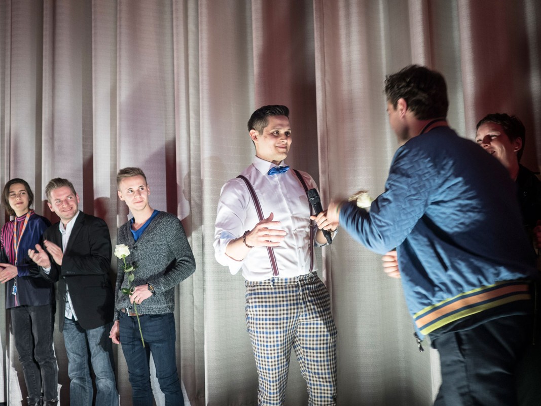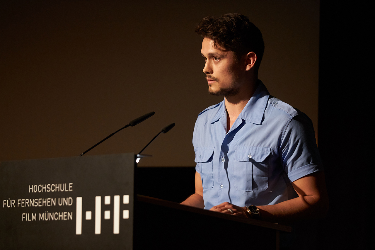 David Clay Diaz auf dem Podium an der HFF München.