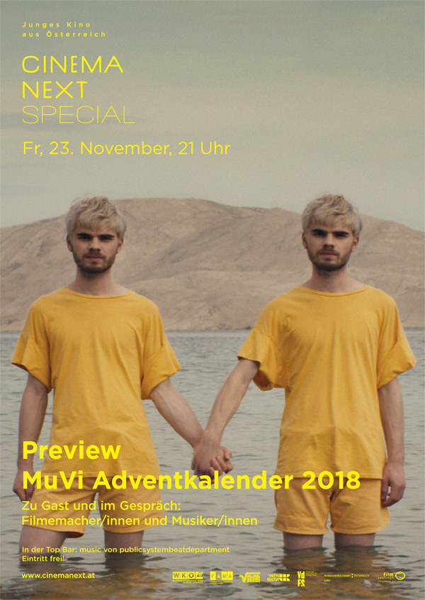Ab 1. Dezember wird täglich auf cinemanext.at ein Türchen des Cinema Next Adventkalenders geöffnet: 24 tolle Musikvideos sind darin versteckt, die von jungen FilmkünstlerInnen gestaltet wurden. Ein buntes Musikvideo Best-of 2018 und gleichzeitig ein Beweis, wie gut Musik- und Filmkunst aus Österreich sein können! In einer Preview öffnen wir vorab schon ein paar Türchen und geben gemeinsam mit Gästen einen ersten Einblick in den Adventkalender. Lasst euch überraschen!