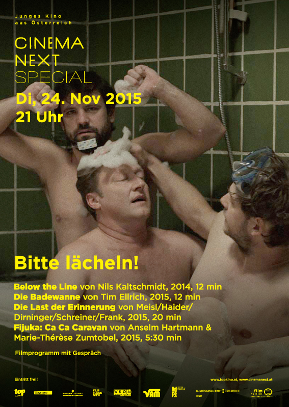 Lustige Filme zu machen, und seien sie noch so klein, ist eine große Kunst. Wir präsentieren vier Beispiele, die am schwierigen Genre nicht scheitern: Nils Kaltschmidt zeigt uns, wie es an einem Filmset hinter der Kamera zu- und hergeht; Tim Ellrich steckt drei erwachsene Brüder in eine kleine Badewanne; das Team rund um Albert Meisl macht einen Film über jemanden, der Albert Meisl zum Verwechseln ähnlich ist; und bei Anselm Hartmann und Marie-Thérèse Zumtobel wird die Band Fijuka zur kämpferischen Space Patrol.