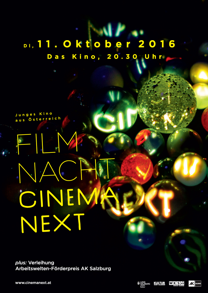 Cinema Next steht für spannendes Nachwuchskino aus Österreich. Das beweisen halbjährlich und zum nun 11. Mal die Cinema Next Filmnächte, die im Oktober wieder durchs Land touren. Am 11. Oktober wird sich die next generation im Das Kino mit neuen Kurzfilmen vorstellen. Mit dabei: Filme der Salzburger Filmschaffenden Nina Glonegger, Carmen Tomandl, Sabine Bruckner, Armin Thalhammer, Alexander Gratzer und Bernhard Wenger!