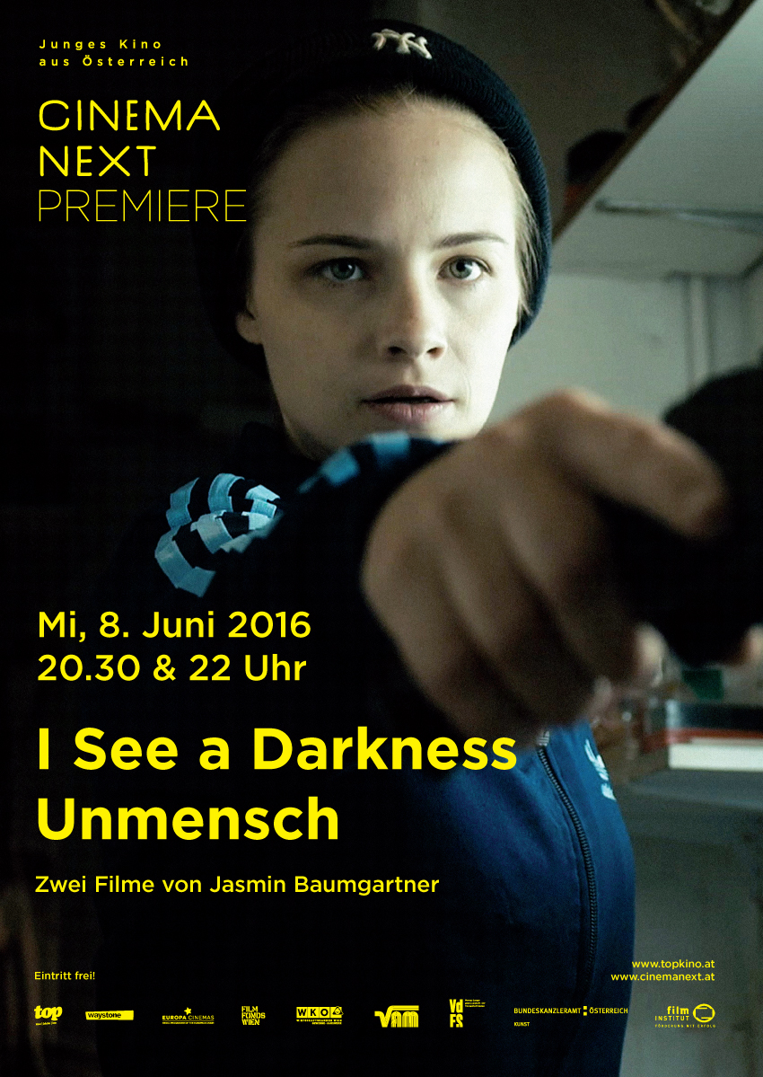 Gleich mit zwei Filmen begeht Jasmin Baumgartner ihr Regie-Debüt. Auf den ersten Blick nicht unbedingt inhaltlich verwoben, bedingt aber doch ein Film den anderen. Und nicht zuletzt die DarstellerInnen Jasna Fritzi-Bauer und Daniel Sträßer verbinden die zwei Filme. In I see a Darkness muss sich Carmen die Frage stellen, was passiert, wenn man sich einmal im Leben richtig entscheiden muss. Wenn diese Entscheidung alles für immer verändert? Ganz andere Fragen stellen sich Dany und Jasper, wenn sie in Unmensch einen Obdachlosen mit einem inszenierten Streit in eine Falle locken. Die Situation eskaliert und wer am Ende weint, wird gefeiert.