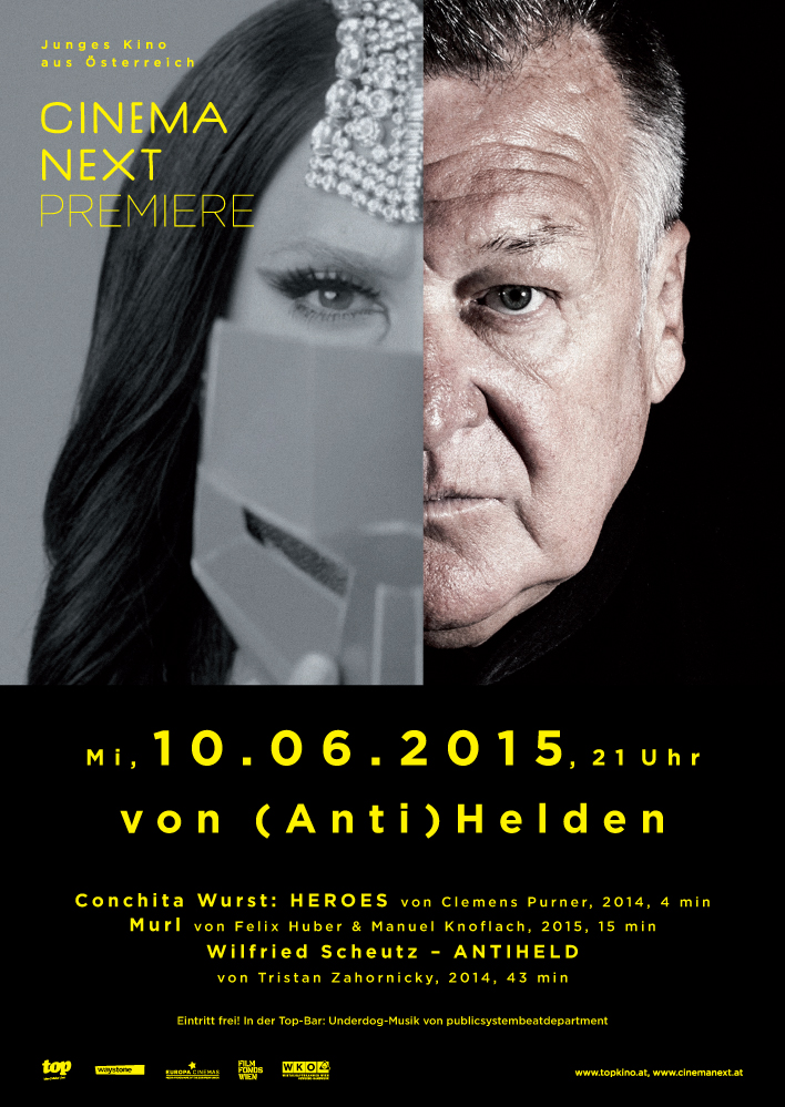 Wer sind die (Anti-)Helden von heute? Wir haben 3 Vorschläge für euch zusammengestellt. Den Anfang macht eine Heldenfigur, die zwiespältiger nicht seinkönnte: Mit Schönheit und moralischer Stärke singt uns Conchita Wurst, eigentlich ein schriller Underdog, mutig: „We could be heroes tonight!“ Das gilt auch für zwei andere Personen, denen an diesem Abend filmische Portraits gewidmet sind: Murl skatet, bis Boards und Knochen brechen, er feiert, bis er speibt. Ein kleines Portrait eines scheinbar kleinen, aber furchtlosen Stadtmenschen. Ein Mensch voller Leidenschaft ist auch Wilfried Scheutz, der Underdog des Austropop. Von Stärken und Schwächen geprägt reflektiert er sein großes Leben. Helden oder Antihelden? Vermutlich beides!