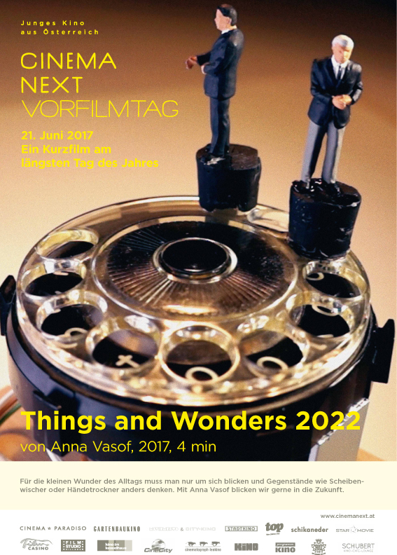 Dieses Mal zeigen wir den experimentierfreudigen Kurzfilm "Things and Wonders 2022" von Anna Vasof, in 8 Bundesländern, in 13 Städten und 19 Kinos!