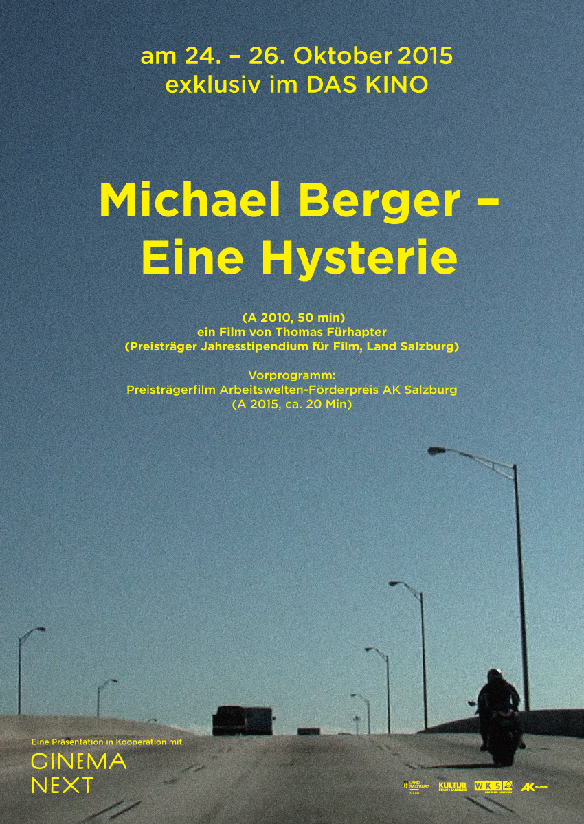 lle Preisträger des Jahresstipendiums für Film des Landes Salzburg, Thomas Fürhapter, wird mit einem Film vorgestellt, der in Salzburg zum ersten Mal im Kino zu sehen ist: Michael Berger ist ein österreichischer Investment-Banker, der kurz nach der Schule in Salzburg sehr schnell über riskante Hedge-Fonds zu einem reichen Spekulanten an der Wall Street wurde. Das Millionengeschäft endet im Verbrechen, Michael Berger wird international gesucht und muss vor’s Gericht.