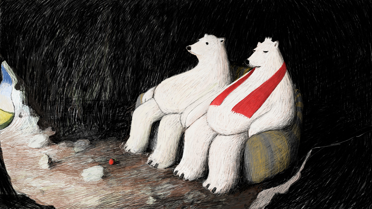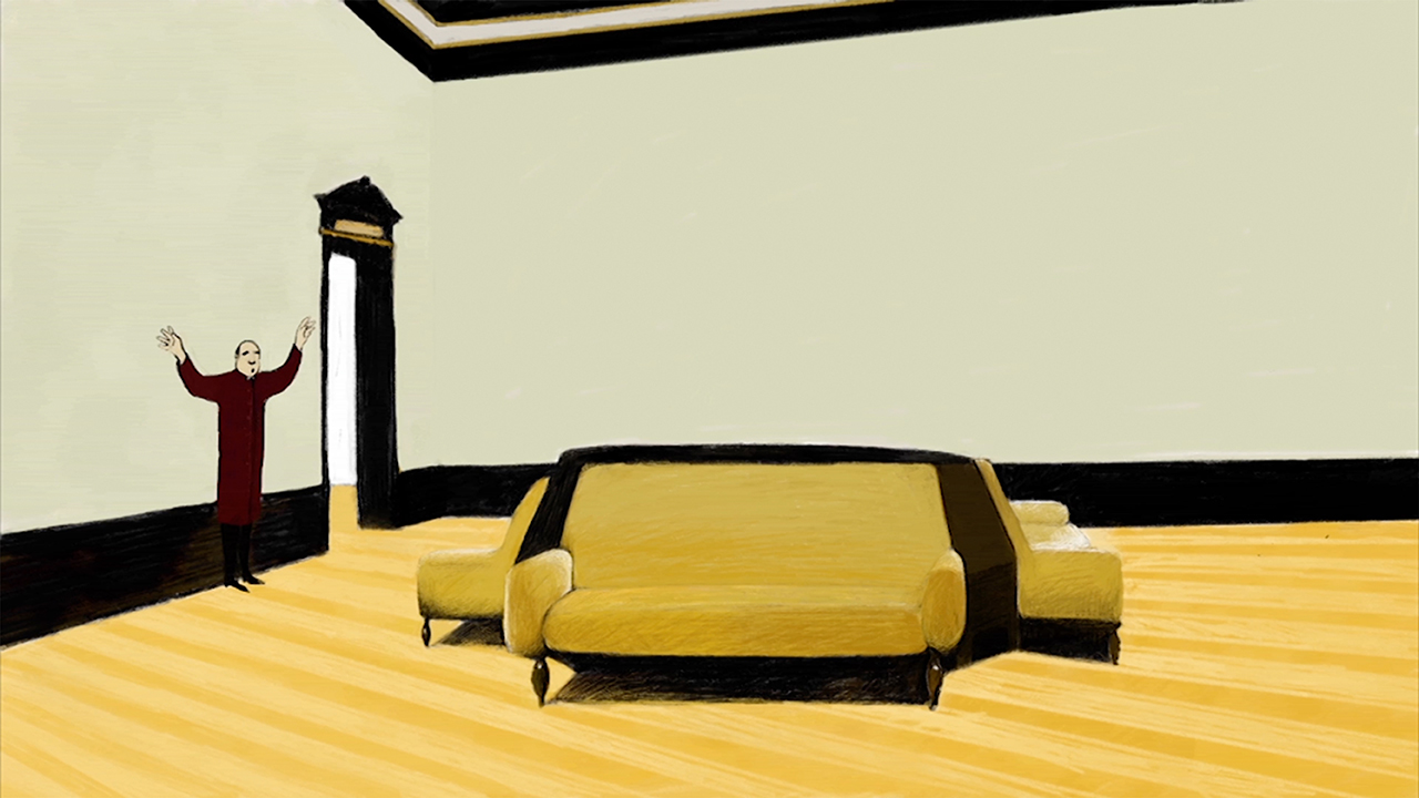 Bedeutendere Inspirationsquellen als die großen amerikanischen Animationsfilme waren für Alexander schon immer Comics wie Asterix, Tim und Struppi, Lucky Luke oder Nick Knatterton. Neben einer Affinität für den absurden Humor, die Dialoge und die Mise en Scène des schwedischen Regisseurs Roy Anderson oder für die vielschichtig inszenierten Figuren in Jim Jarmuschs Coffee and Cigarettes, dem Alexander in Espresso (AT 2016, 5 min) Tribut zollt, streitet er auch die Wertschätzung für Loriot nicht ab: „Der ist natürlich der Klassiker. Seine Figuren leben von der minimalistischen Animation und den pointierten Dialogen, die ehrliche und direkte Art gefällt mir sehr.“