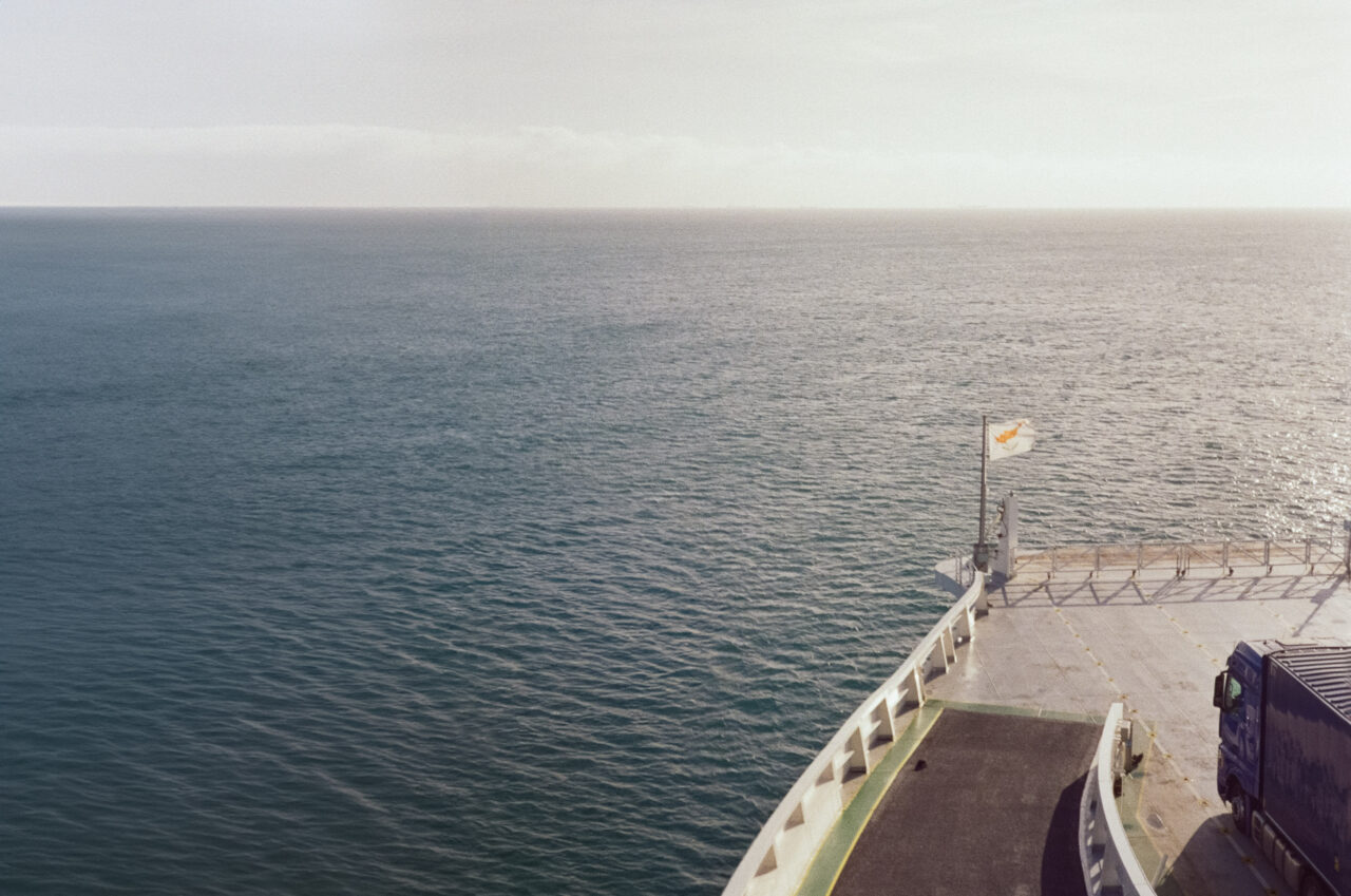 Eine Fähre am Ärmelkanal zwischen Dover und Calais. Aufgenommen von Daniel, auf einer seiner Recherchereisen zu “AUF DER STRECKE”.