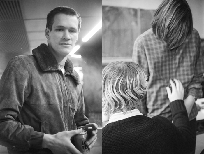 Fotos von Josephine Ahnelt von Menschen auf der Straße (links) und von Klassenkameraden, 2002.