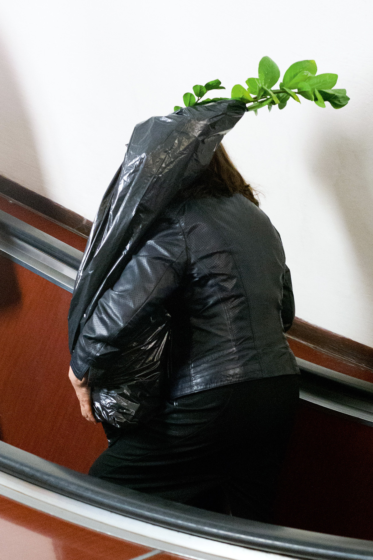 Zur Hauptverkehrszeit fluten Menschenmassen die Tunnel. Auf den Rolltreppen blitzen die entgegenkommenden Gesichter in den Lichtkegeln der Beleuchtung auf. In manchen Bildern entsteht eine poetische Ebene, wenn die Körper etwa unter den räumlichen Gegebenheiten der Rolltreppe zur Ruhe kommen und die Personen in gleichgeschalteten Posen verharren, die sie selbst zur Skulptur werden lassen. Der Realmensch und der in den Kunstwerken der Metrostationen dargestellte Idealmensch treten in Dialog oder beginnen sich auf befremdliche Weise zu doppeln.