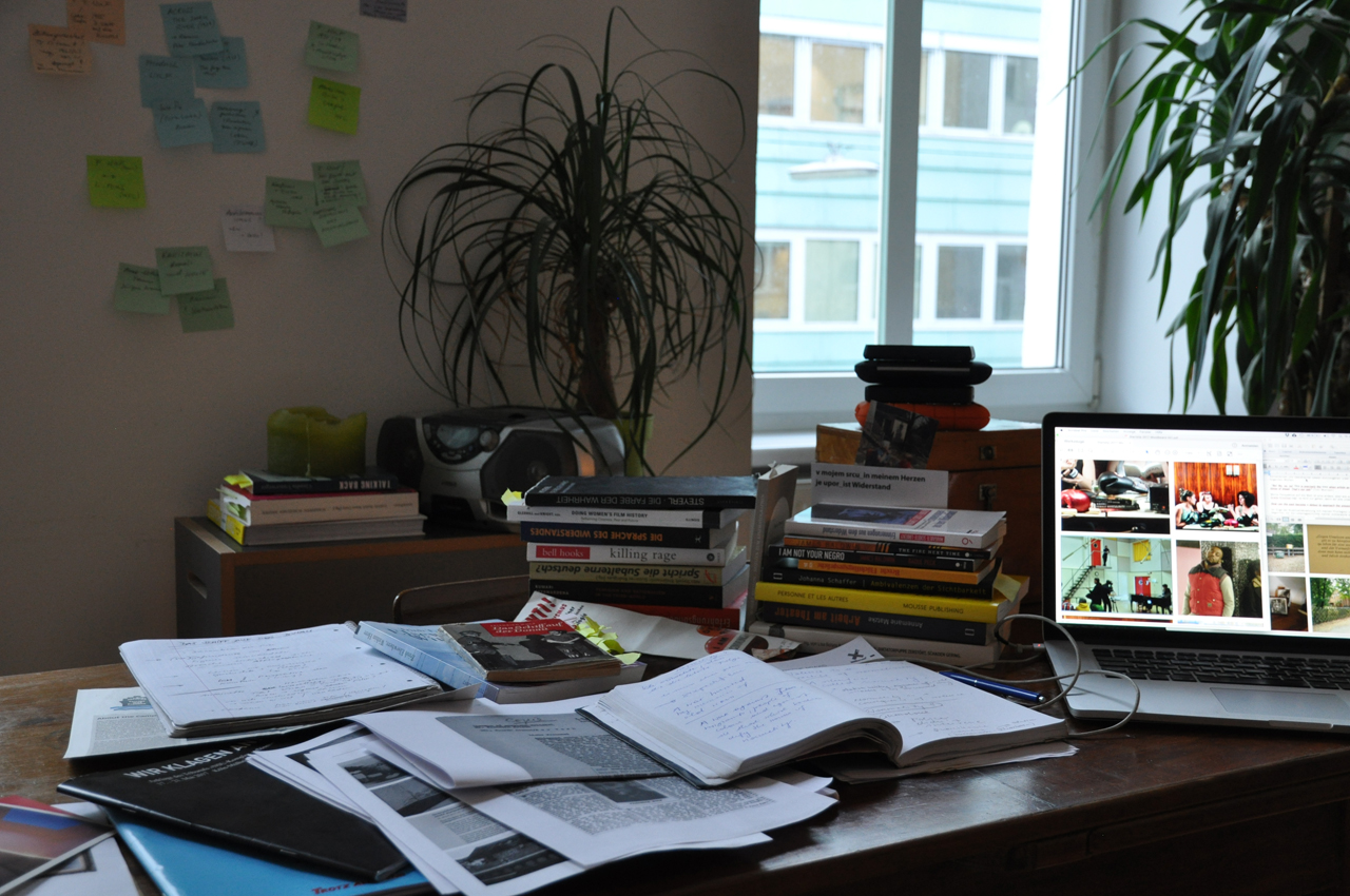 Das Treffen mit Liesa Kovacs findet im Gemeinschaftsatelier X Space, in einem fast unauffindbaren Hinterhof im siebten Bezirk statt. Liesas Kollaborationspartner Nick Prokesch aus Femme-Brutal-Zeiten verabschiedet sich gerade mit einer Tasse Kaffee in das kleine Schneidezimmer nebenan. Liesa und ich bleiben zurück in dem langgezogenen Arbeitsraum, der gerade vom ebenfalls hier ansässigen Kollektiv WE DEY als Ausstellungsfläche genutzt wird. In einer Ecke des Raums steht eine gemütliche Sitzgruppe, wo Liesa Kaffee und Kekse bereitgestellt hat. Und schon sind wir mitten drin in ihrer Lebens- und Arbeitswelt.