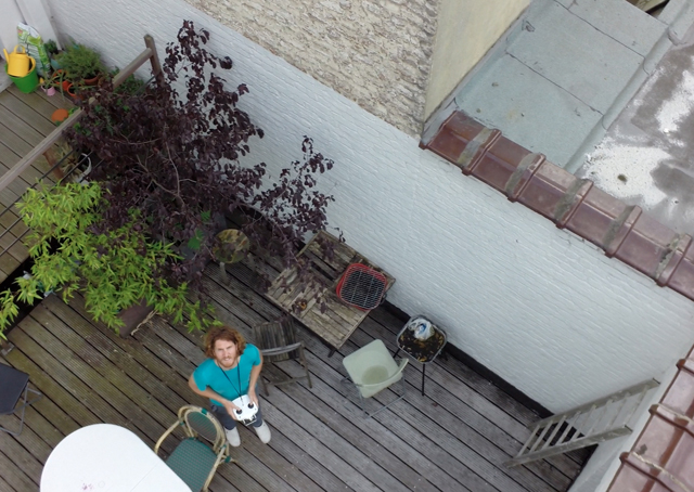 Lukas bei einem Probedreh mit einer Drohne. „Ein Drohnen-Selfie“, nennt er das Bild. „In San Franciso gibt es eine krasse Dienstleistung: Drones on Demand. Man bestellt online eine Drohne, die dann angeflogen kommt und ein Foto macht. Mittlerweile hat dort jede 5. Hochzeit einen Drohnenfotographen.“
