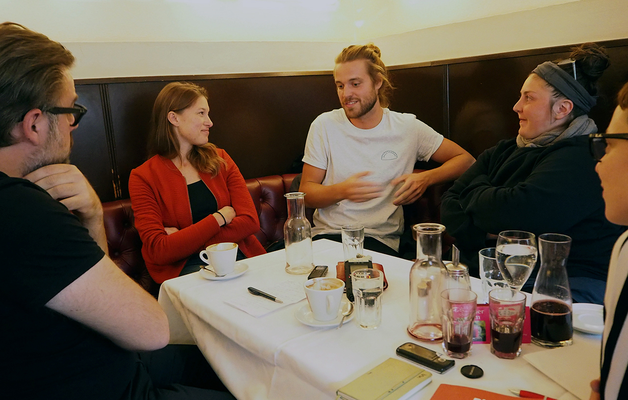 Anfang Oktober in Wien: Albert Meisl, Nora Czamler, Ken Rischard, Theda Schifferdecker und Michelle Koch treffen sich zum Gespräch. (Foto