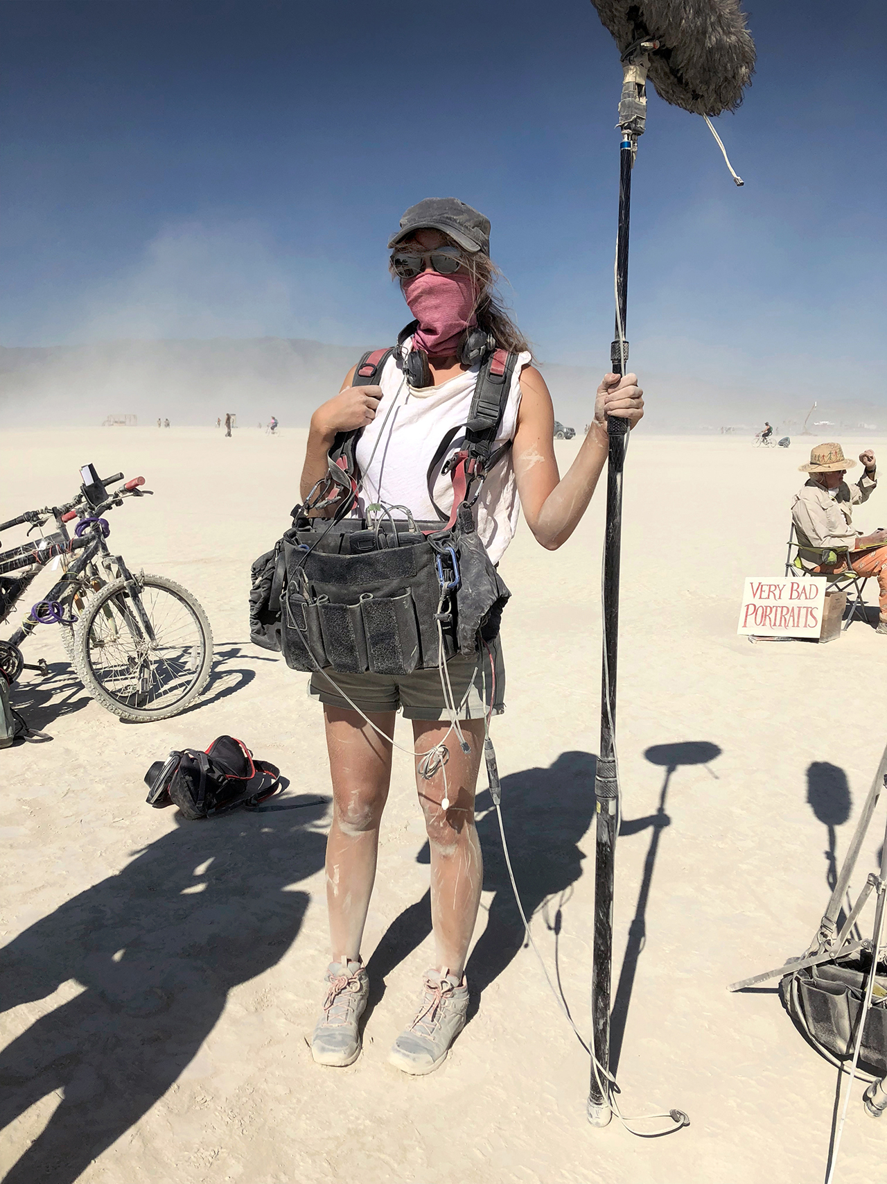 , geboren 1990 in Oberösterreich, studiert seit 2011 das Tonmeister-Diplomstudium an der ELAK an der Universität für Musik und darstellende Kunst. Ihre bisherigen Tätigkeiten beim Film: Boom Operator bei Kino- und Fernsehspielfilmen, Tonmeisterin bei Kinodokumentarfilmen und Setton, Tonschnitt, Sounddesign und Mischung für zahlreiche Dokumentar- und Kurzspielfilme. Foto: Nora beim Burning Man Festival in der Wüste Nevadas, USA, für den neuen Dokumentarfilm von Nikolaus Geyrhalter. (Foto