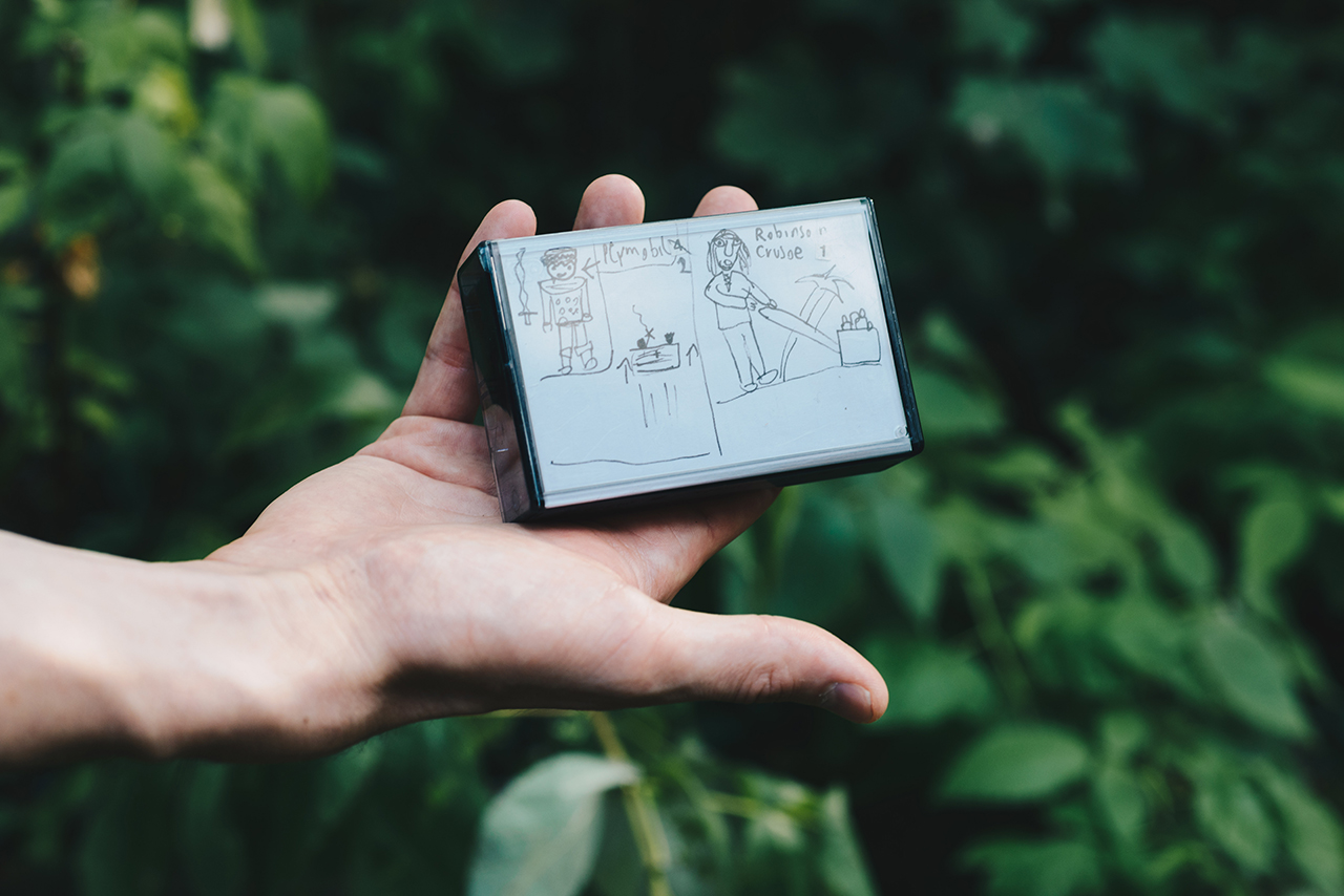 Weil uns gesagt wurde, wir sollen ein Objekt mitbringen, dass wir mit unserem Filmschaffen verbinden, habe ich mich für eine Videokassette mit Aufzeichnungen, die ich als Kind gemacht habe, entschieden. Ein bisschen romantisierend vielleicht – aber ein wichtiges Detail dazu: Diese Kassette ist nicht mehr abspielbar. Sie war so schlecht gelagert, dass nichts mehr auf dem Band ist. Ich kann nur versuchen mich zu erinnern, was da wohl drauf war. Früher habe ich mit meinem jüngeren Bruder viele Videos gemacht. Als er sechs Jahre alt war, haben wir zum Beispiel Frankensteins Monster verfilmt und auch die Operation nachgestellt, wo das Hirn in die Leiche des Monsters eingesetzt wird. Mein Bruder hatte danach leider Albträume. So fies sind ältere Geschwister!