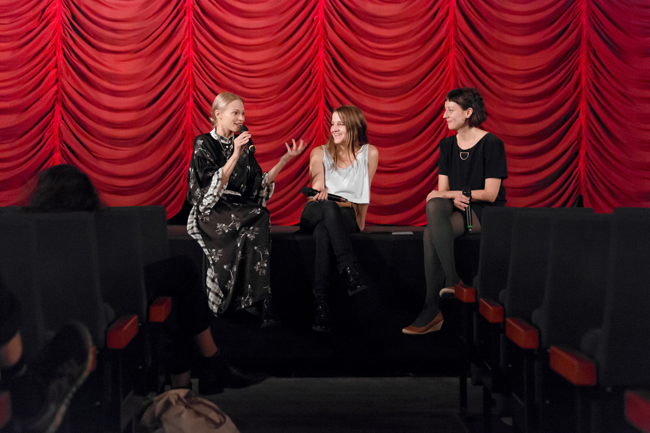 Wiktoria Pelzer empfängt Schauspielerin Mavie Hörbinger (links) und Regisseurin Helene Hegemann zur Österreich-Premiere von