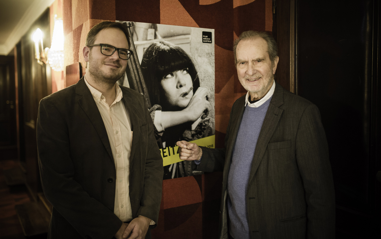 "Eine Retrospektive, die ich immer schon mal machen wollte." Florian Widegger empfängt im Metro Kinokulturhaus seinen Gast Edgar Reitz, Februar 2018 (Foto: Severin Dostal).