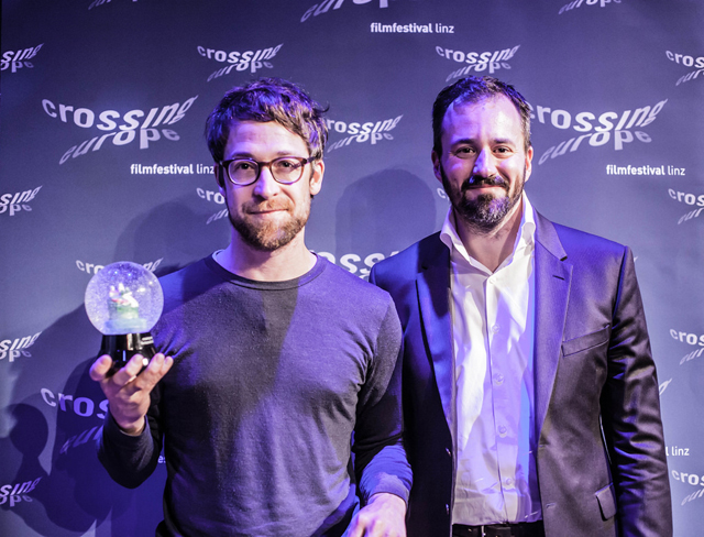 oben: Jakob (mit Patrick Bartos von der Creative Region Upper Austria/Linz) bei der Preisverleihung des Crossing Europe Filmfestivals.