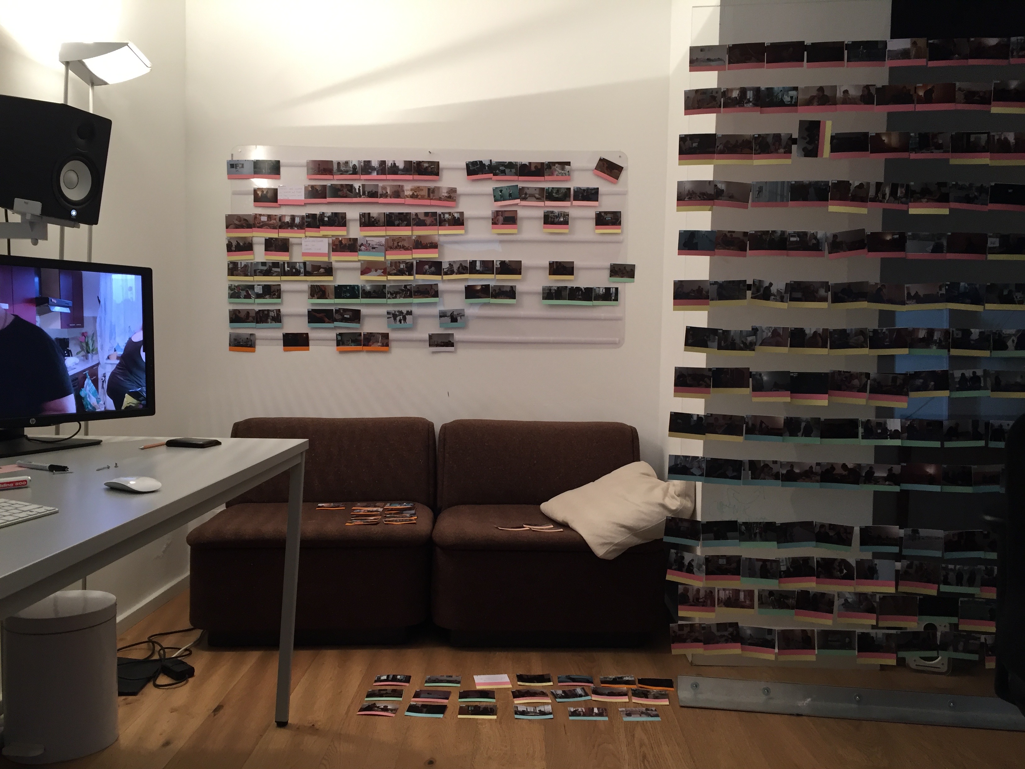 Sortierarbeit als Entspannungsarbeit: Wände voller Frames beim Schnitt zu