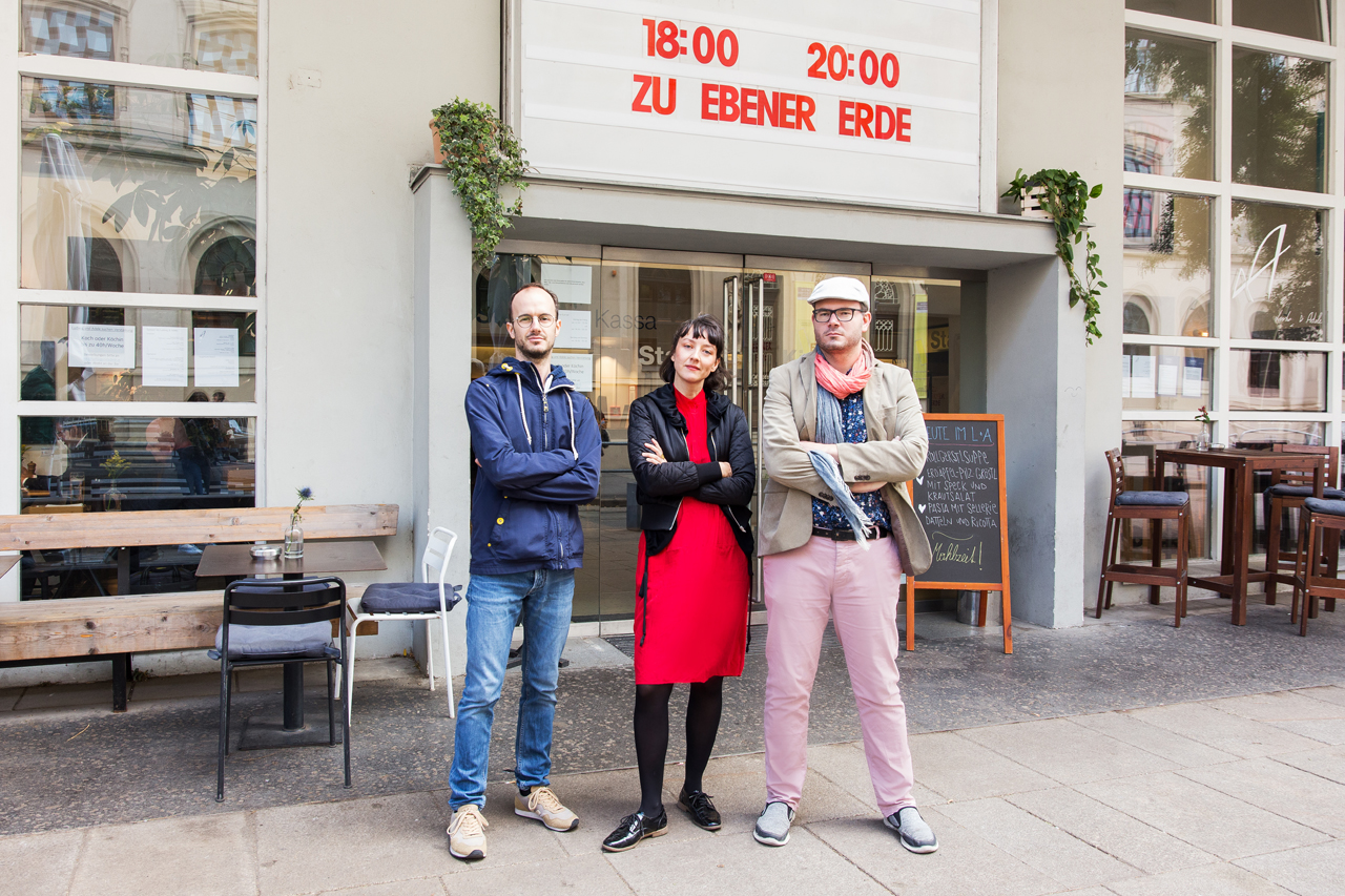 Gekommen, um zu gestalten. Stefan, Wiktoria und Florian vor dem Stadtkino im Künstlerhaus. (Foto: Elodie Grethen)