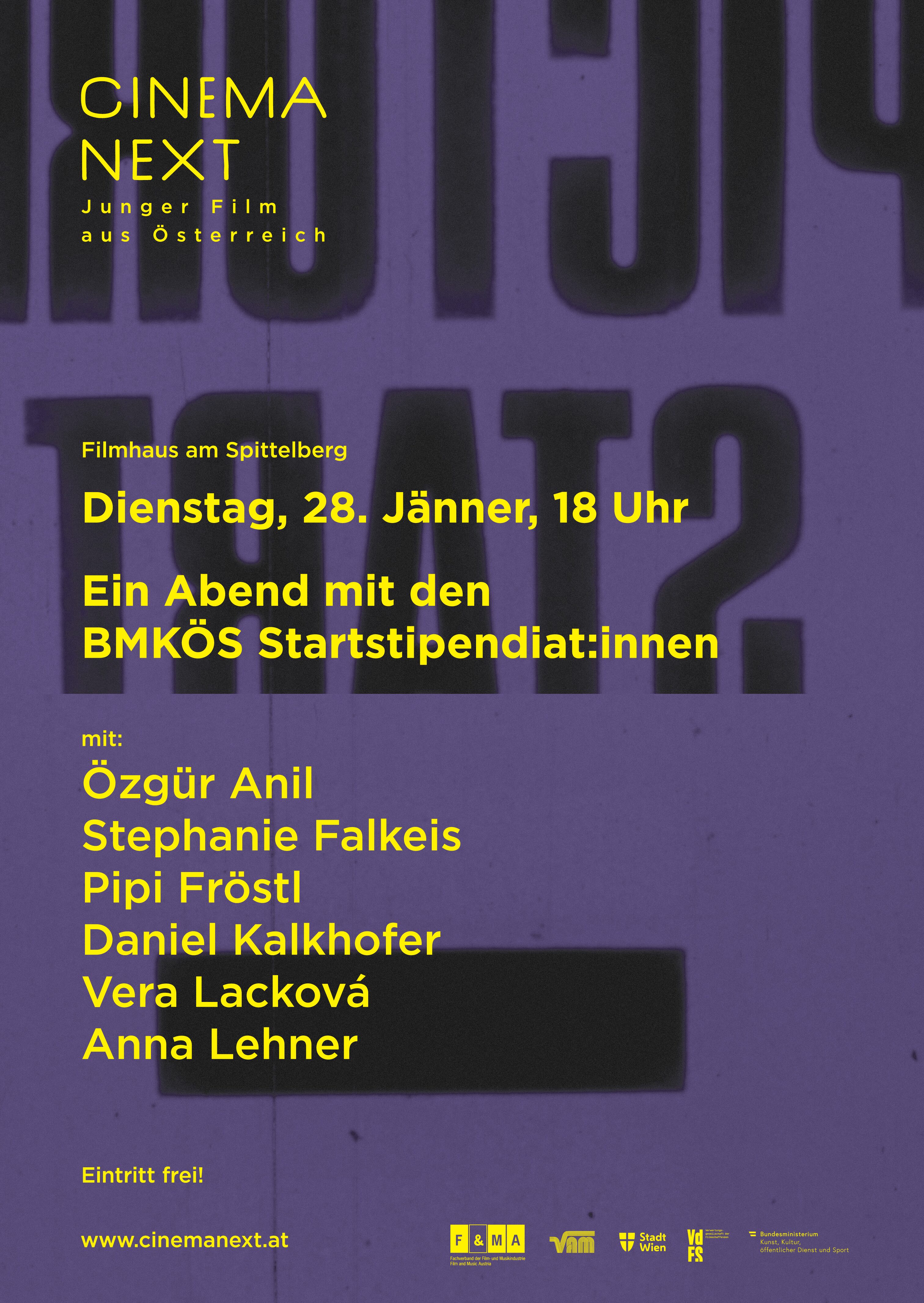 Die Startstipendien für Filmkunst, die jährlich von der Sektion Kunst und Kultur des Bundesministeriums für Kunst, Kultur, öffentlichen Dienst und Sport (BMKÖS) vergeben werden, ermöglichen jungen Filmschaffenden, durch finanzielle und inhaltliche Unterstützung ihre Ideen heranreifen zu lassen und daraus neue Langfilm-Projekte zu entwickeln.